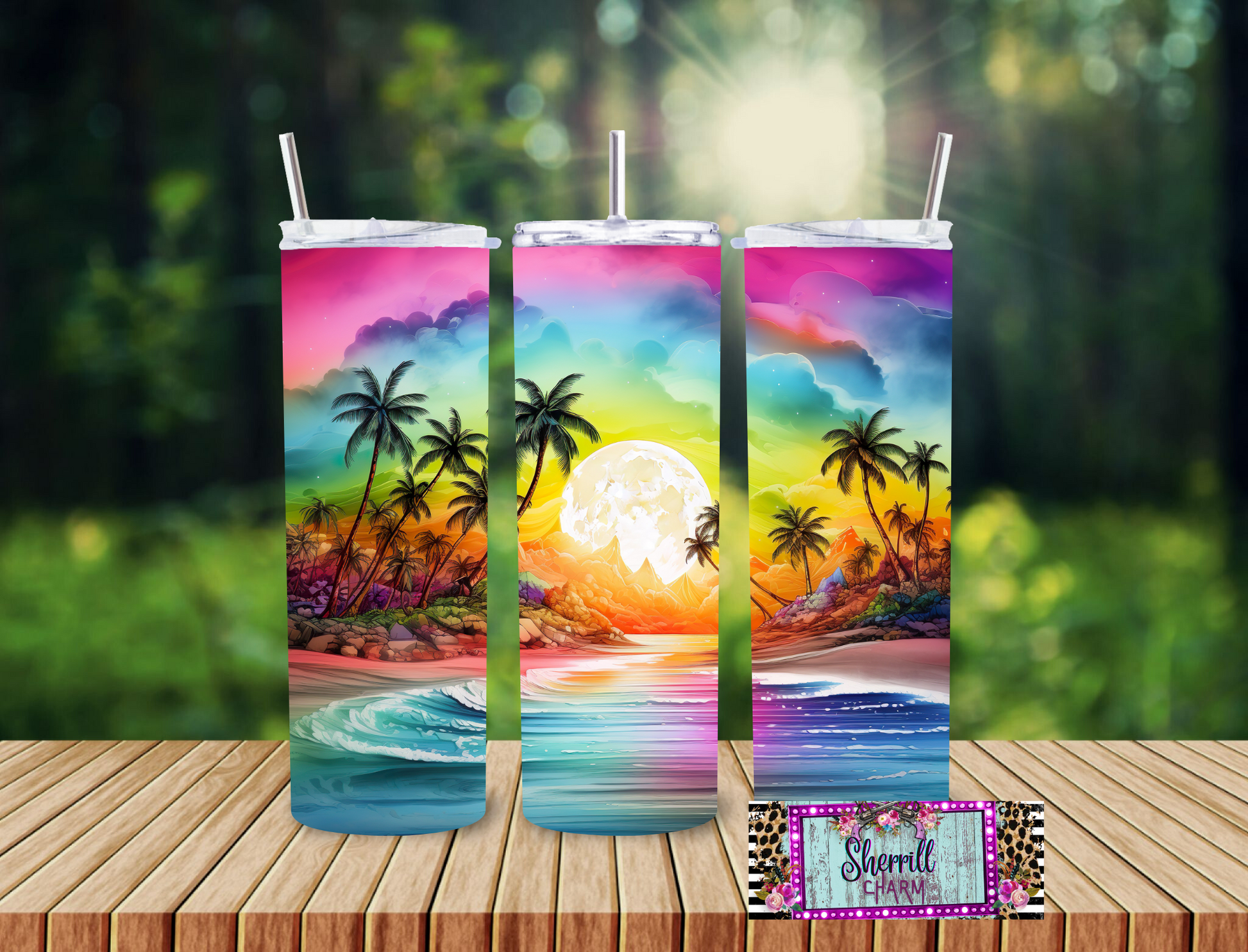 Full wrap design, lid, rubber base bottom, rubber & metal straw included.