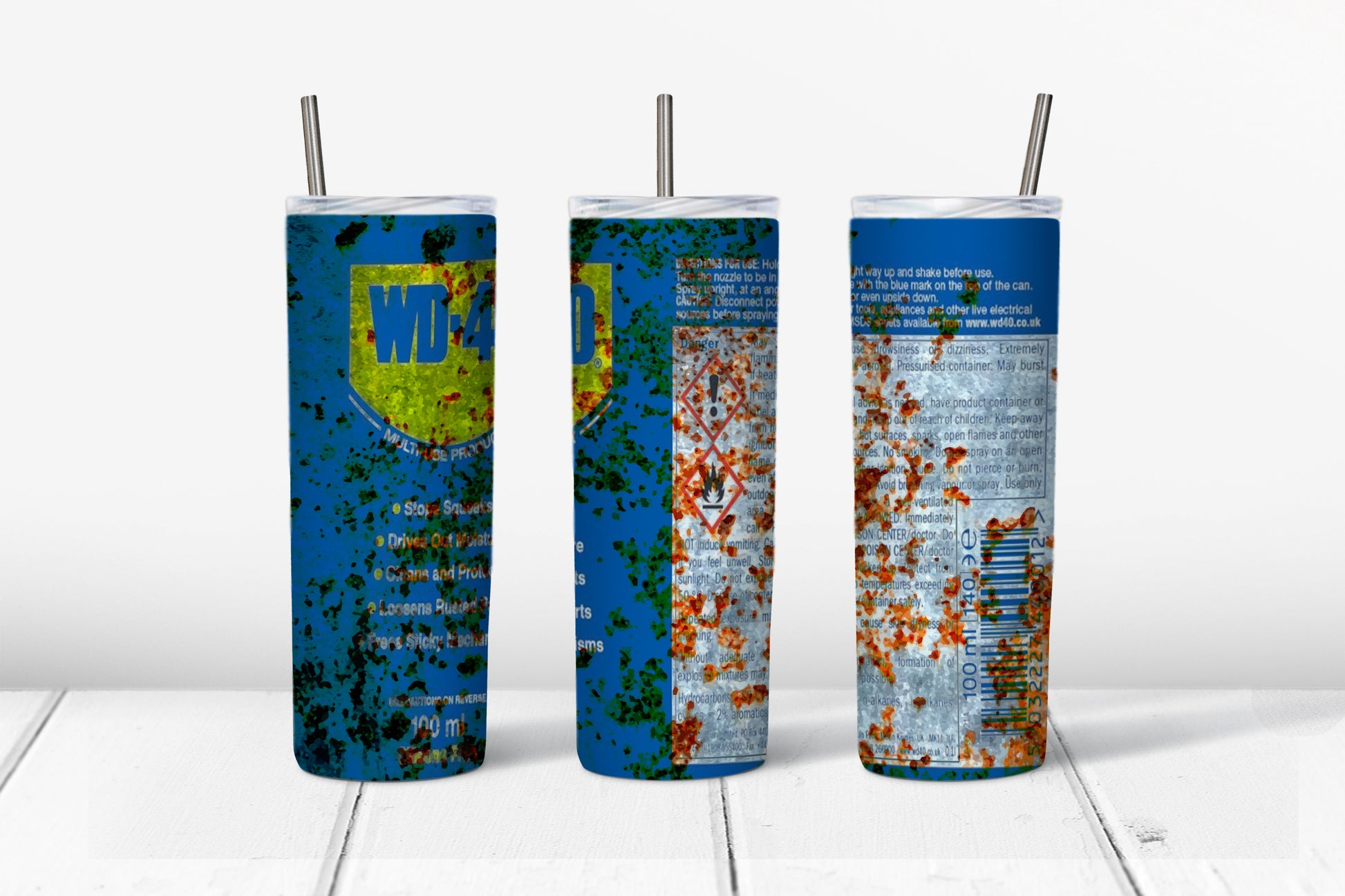 Full wrap design, lid, rubber base bottom, rubber & metal straw included.